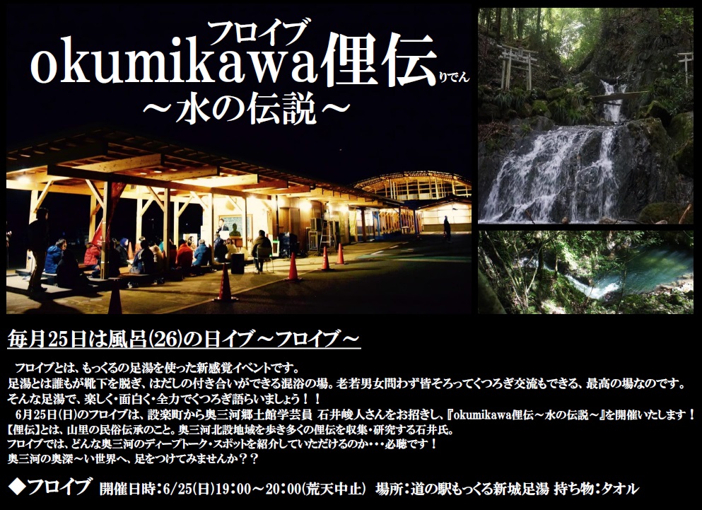 今回のフロイブは設楽町より石井峻人さんをお招きし、『okumikawa俚伝(りでん)~水の伝説~』を開催いたします。