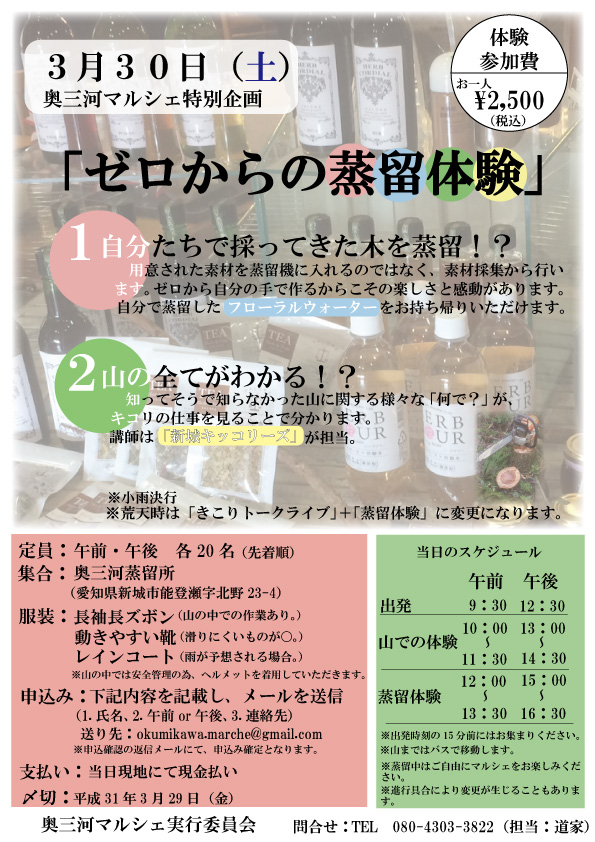 2019年3月30日(土)・31日(日)に新城市にオープン予定の奥三河蒸留所にて奥三河マルシェを開催いたします。