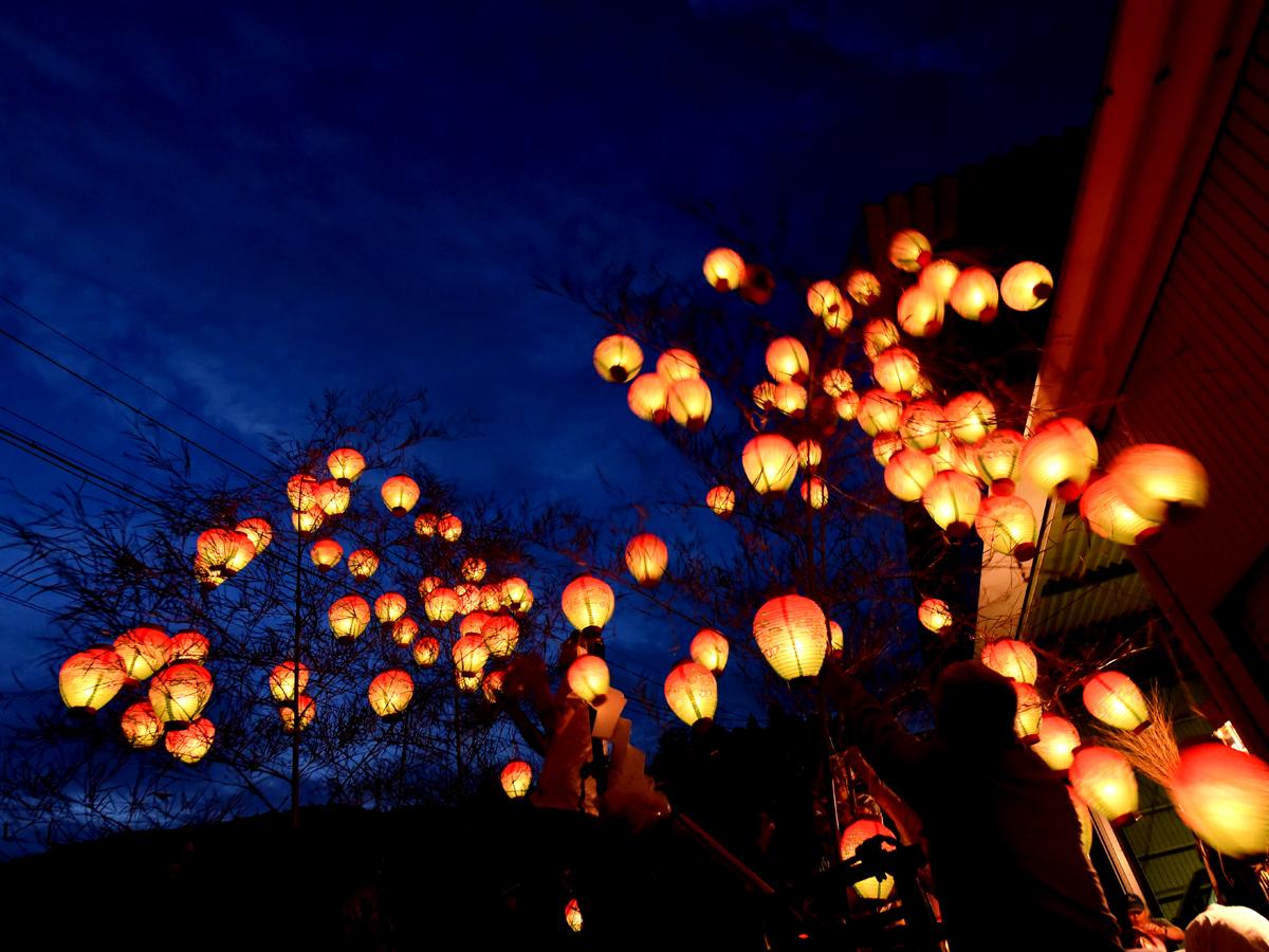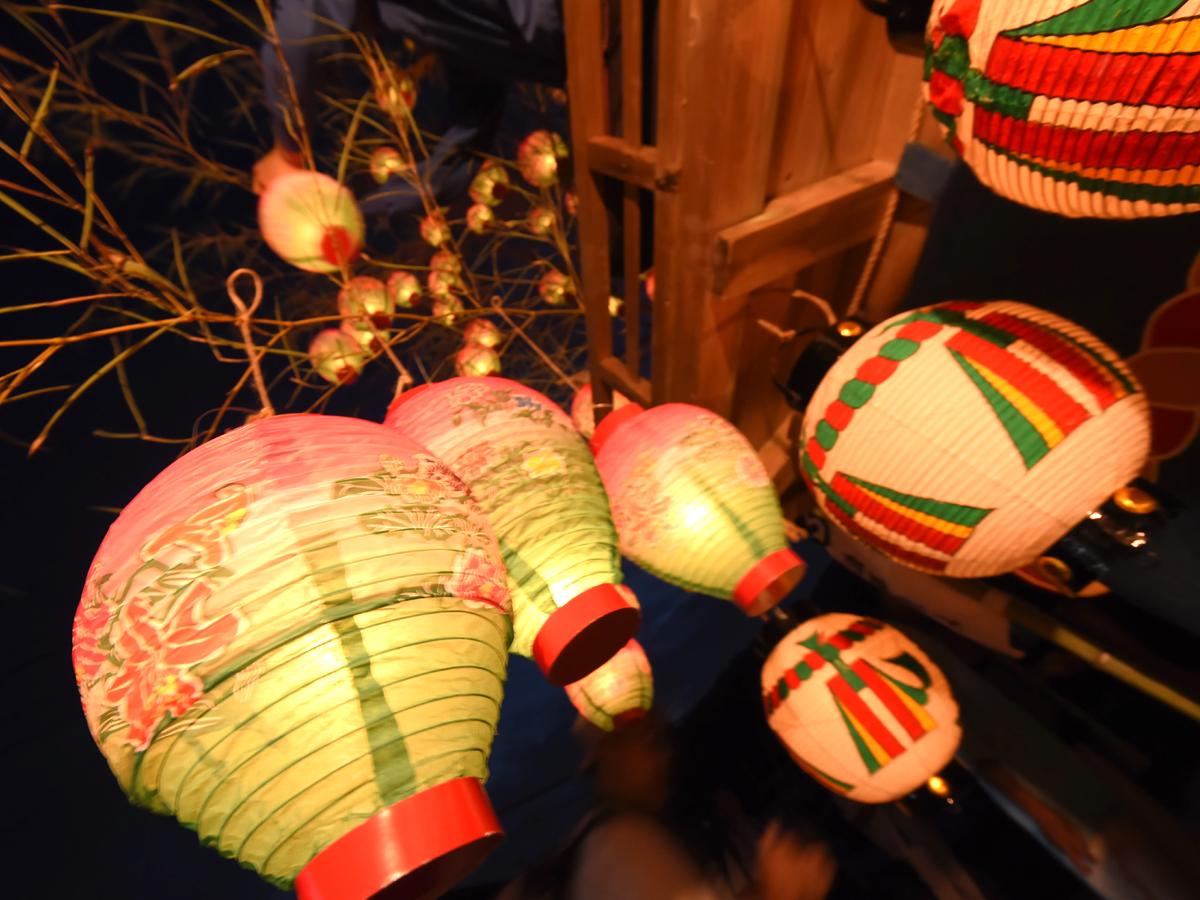須佐之男命を祭神とする津島神社に付随した祭礼として、本社の祭りを模倣したもので、氏子が奉納したたくさんのホウズキチョウチンへ灯をいれて献灯します。約150張りのチョウチンを灯した山車が曳かれ、津島神社へ奉納された後は、「チョウチン取り」が始まります!参拝者に向けて投げられるヤナギやチョウチンを我先にと奪い合い、それらは「夏病みしない」と言われ、戸間口に飾られます。
