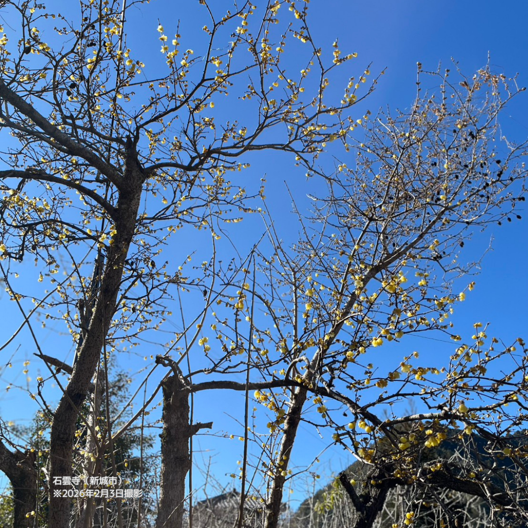 境内ではあわせて蝋梅(ろうばい)も咲き始め、甘くやさしい香りが漂い始めました。