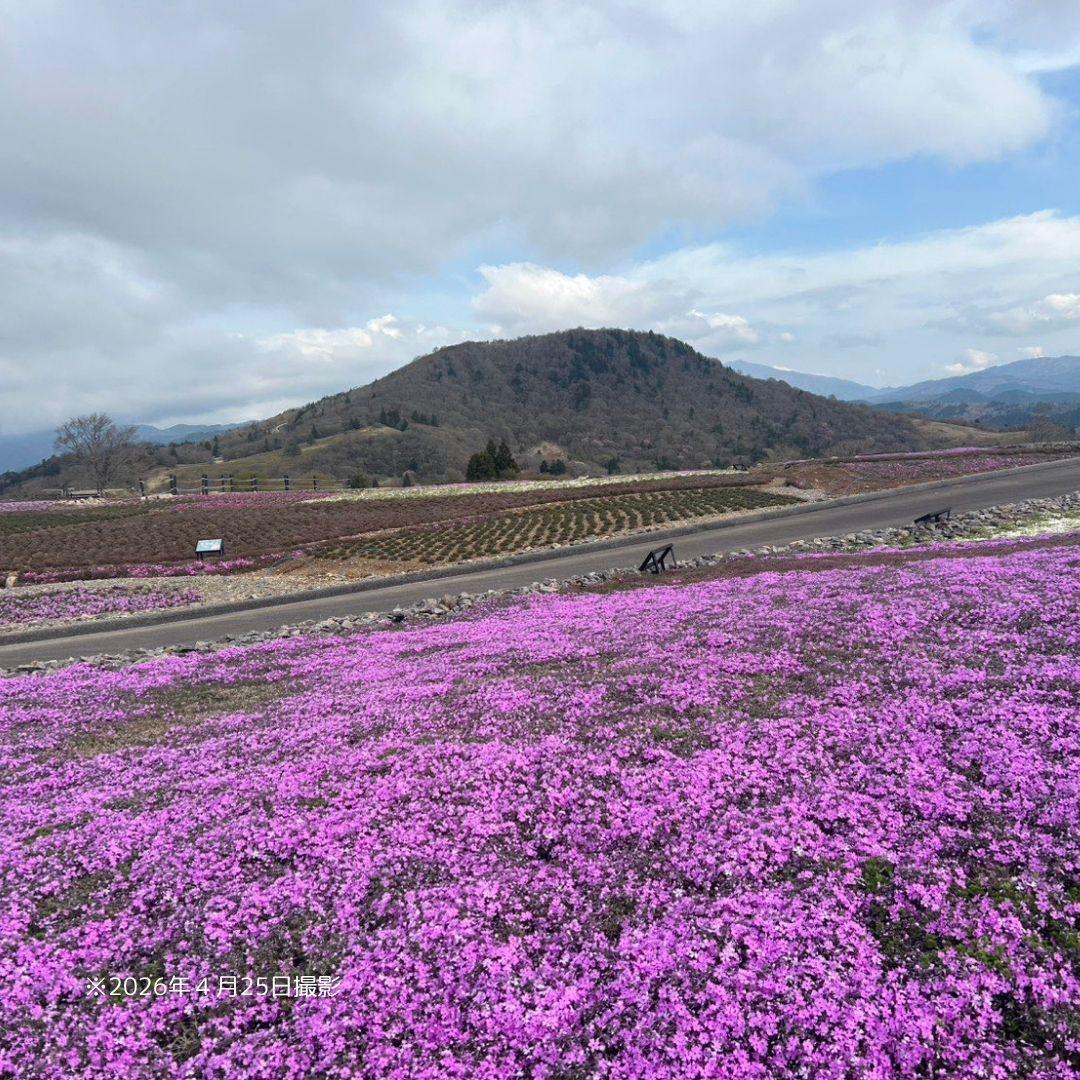 茶臼山高原の芝桜は、全体の約2割ほど開花となっております。