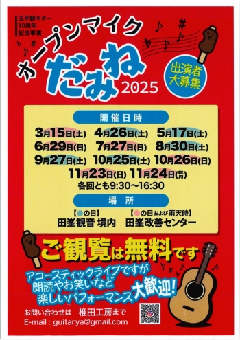 | 時間: | 開場14時半 開演15時 入場料500円 |