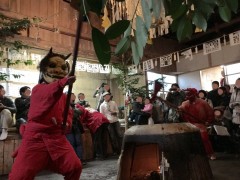 東栄町各地に伝わる花祭りには「振草系」、「大入系」、「大河内系」の3系統があるとされ、小林の花祭りは唯一の「大河内系」といわれています。
