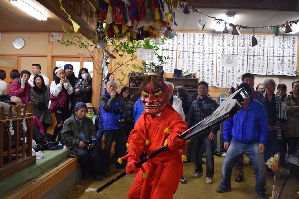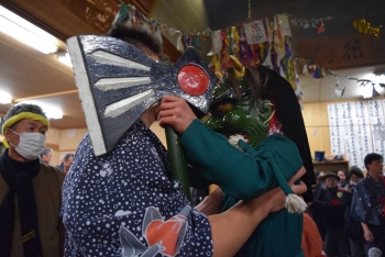子供たちが愛らしく舞う 「花の舞」、巨大な面形の鬼が鉞をかざして舞う 「山見鬼」 「榊鬼」 など、さまざまな舞が、夜を徹して行われます。