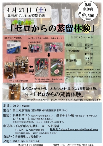 2019年4月27日(土)奥三河蒸留所にて奥三河マルシェを開催いたします。