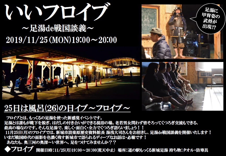 11月25日(月)、道の駅もっくる新城の足湯にてフロイブを開催いたします!