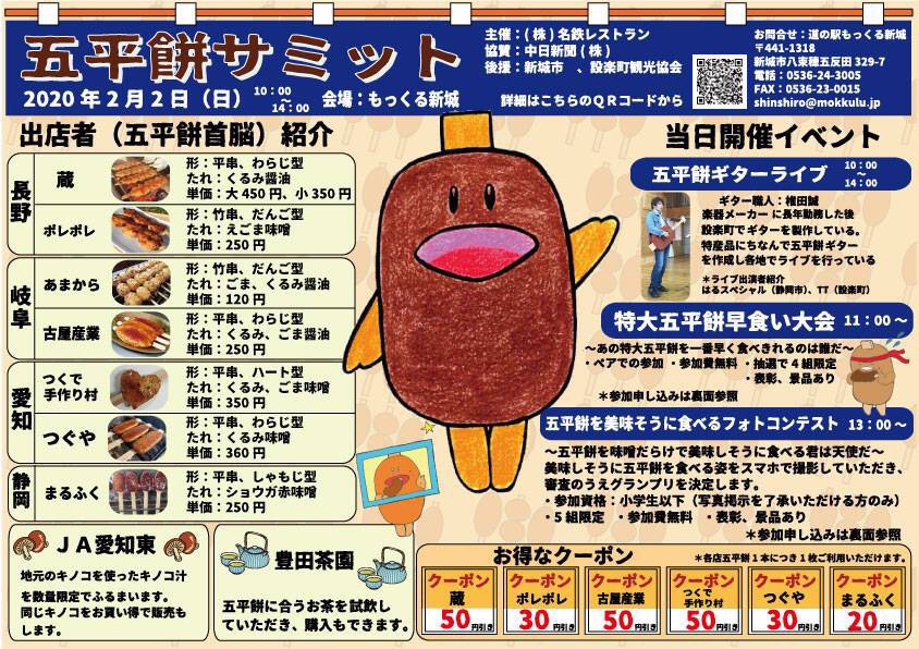 2020年2月2日(日)長野、岐阜、愛知、静岡の各地域の五平餅が道の駅もっくる新城へやってきます!