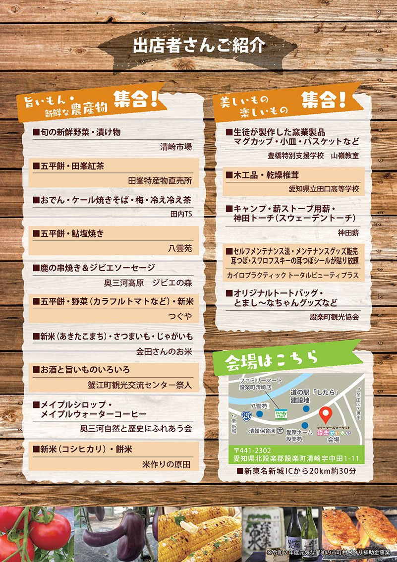 皆様是非第3回ファーマーズマーケット設楽せいれいへおこし下さい。
