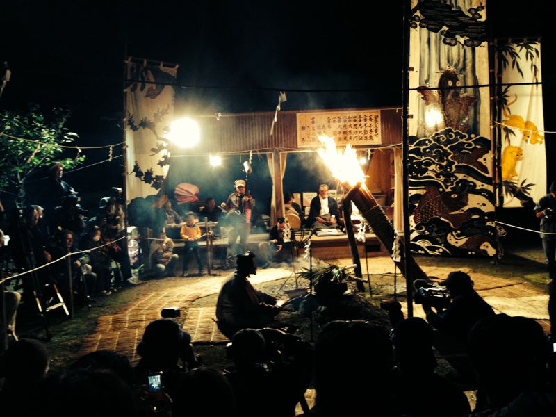 午後7時からは参候の準備にかかり、七福神の登場は午後8時ごろとなります。もとは田楽祭りと記されていた事もありますが、霜月神楽系の湯立神楽が行われます。