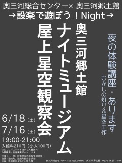 | 場所: | 奥三河郷土館 愛知県北設楽郡設楽町田口字アラコ14番地 |
