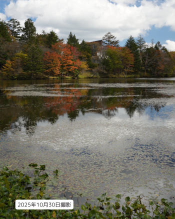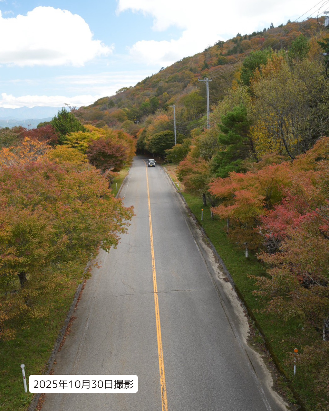 茶臼山高原では木々が色づき始め、黄色や赤の葉が鮮やかに映えています