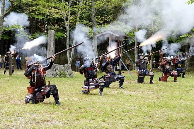 長篠・設楽原鉄砲隊による火縄銃の演武や地元中学生などの太鼓集団による和太鼓演奏等があります。