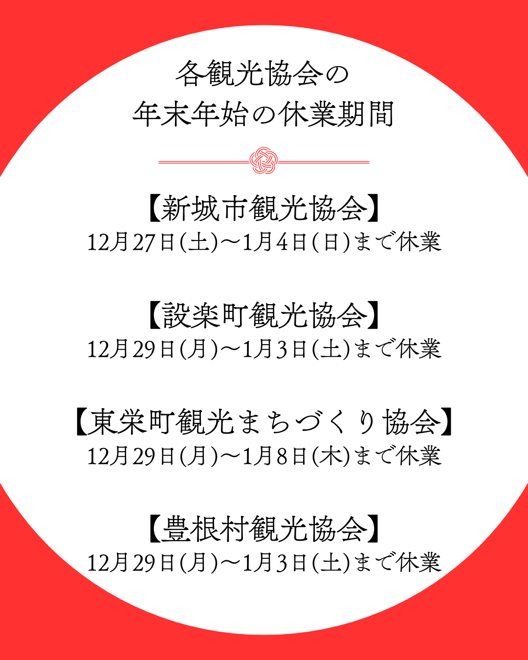 なお、他の観光協会の年末年始の休業期間につきましては、添付画像をご確認ください。