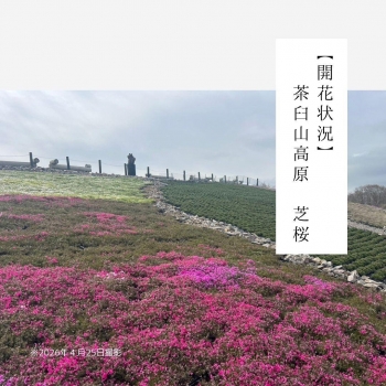 茶臼山高原の芝桜は、全体の約2割ほど開花となっております。