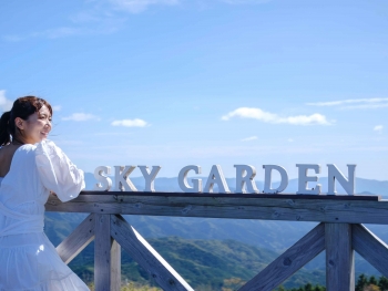 萩太郎山山頂では、360度の大パノラマを一望できる展望台と、青空の真下でくつろぐことができるスカイガーデンを楽しむことができます。
