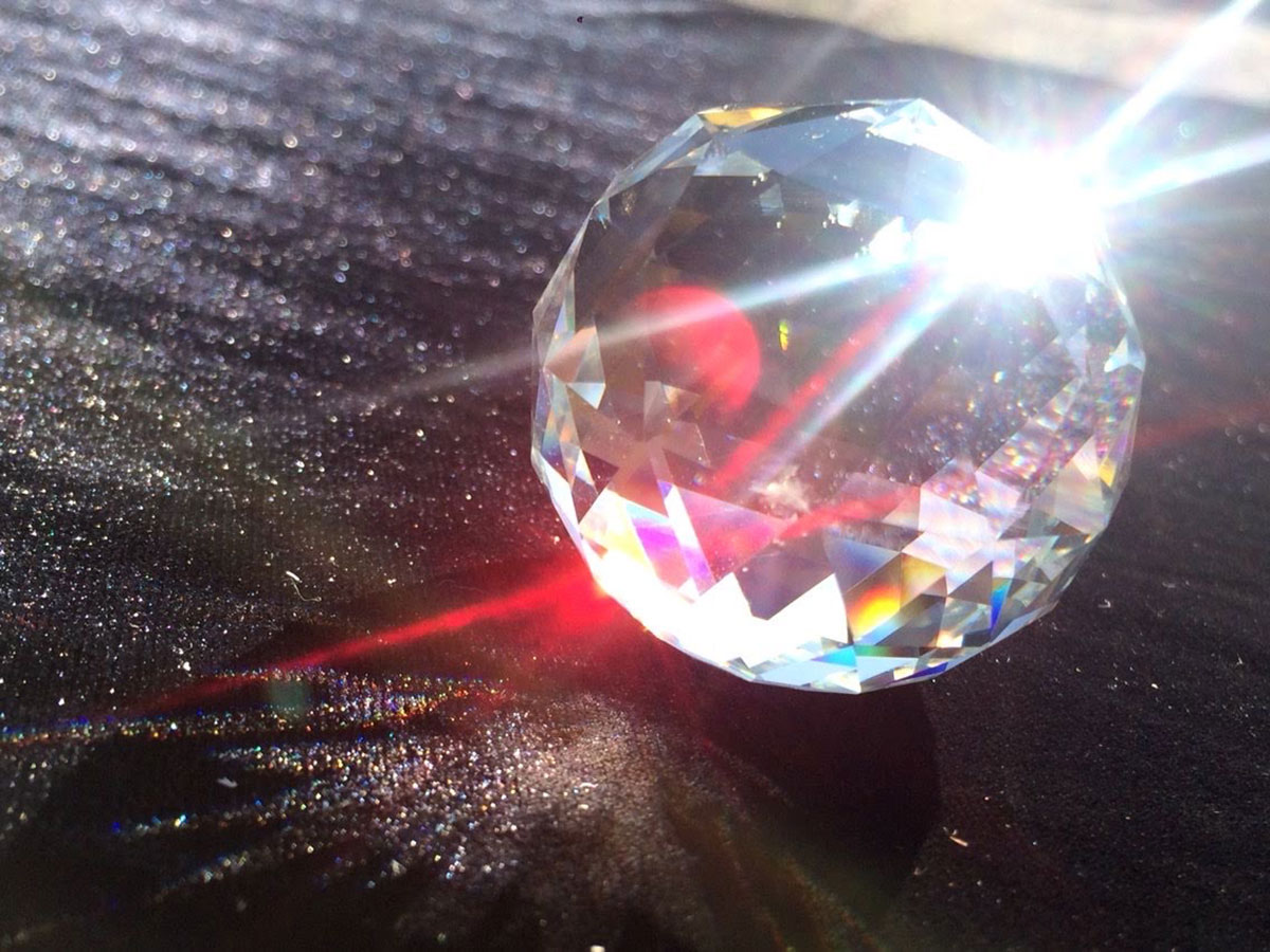 サンキャッチャーが虹色の光を生み出すのは、「光の屈折」と「分散」という物理現象によるものです。太陽光は一見無色透明に見えますが、実際にはさまざまな色の光が混ざり合っています。その光がガラスを通ると、波長の違いによって進む角度が変わり、虹と同じ原理で美しい色彩に分かれて空間に広がります。多面にカットされたクリスタルは、反射と屈折を繰り返すことで、より豊かなきらめきを生み出すのです。